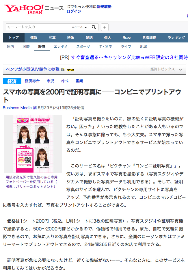 Yahoo!ニュースをはじめ各インターネット媒体で「コンビニ証明写真」が紹介されました
