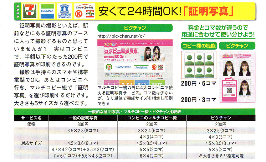 コンビニ歩き方 便利サービス大全の「安くて24時間OK!証明写真」で